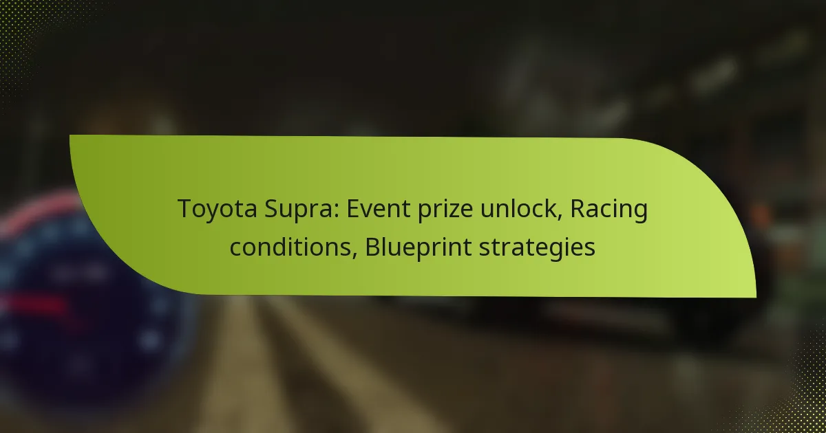 The Toyota Supra can be unlocked as an event prize by completing specific challenges and meeting participation criteria during designated events. Racing conditions play a crucial role in the Supra’s performance, as factors like track surfaces and weather can significantly impact handling and speed. To maximize the Supra’s potential, drivers should implement effective blueprint strategies that include tuning setups and tailored race techniques for optimal results.